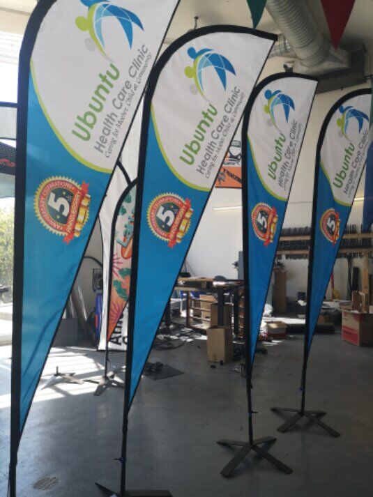 All flying banners, like Sharkfin banners, Telescopic banners, Teardrop banners and Feather or Curved banners as the same price