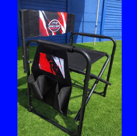 Our director's chairs offers a very handy side branded pouch and the backrest is branded on the front and the back
