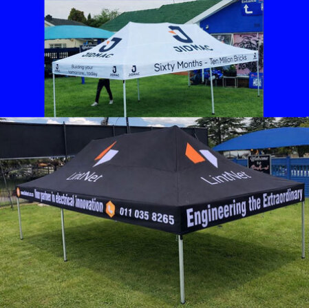 Our standard black steel, 3x4.5m branded gazebos, cost R7 950