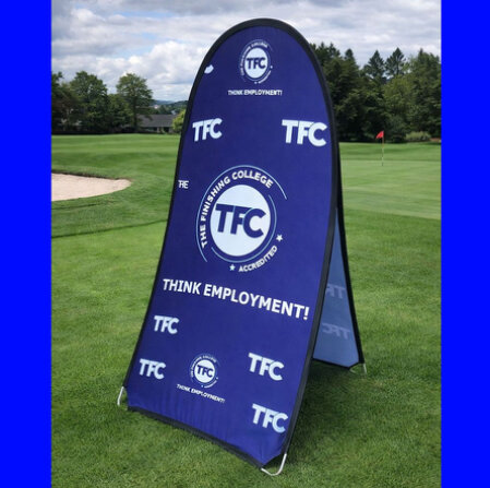 Our A-frame banners can be branded on two or three sizes as shown below. A-frame banners are durable, portable outdoor display banners designed for maximum visibility at events, promotions, sports fields, and roadside advertising. They are quick to assemble, easy to transport, and ideal for showcasing your brand, special offers, or directional messaging in both indoor and outdoor spaces
